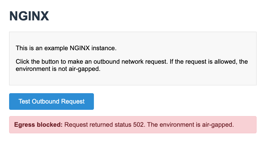 airgap. This prevents outbound internet requests from the VM, allowing you to simulate an air-gapped installation environment. -